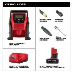 Milwaukee M12 12-Volt Lithium-Ion Cordless Compact Inflator Kit with 4.0 Ah Battery and Charger
