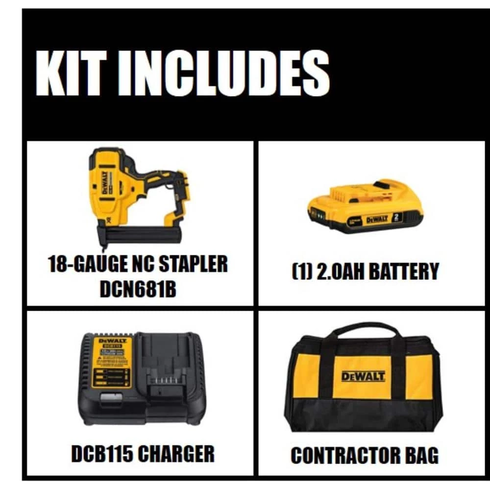 The DEWALT DCN681 18-Gauge Narrow Crown Stapler drives 18-Gauge 1/4 in. narrow crown staples from 1/2 in. to 1-1/2 in. which makes it ideal for cabinetry, furniture, paneling, and flooring underlayment. With its brushless motor powered by a DEWALT 20-Volt MAX Lithium-Ion battery the DCN681 is ready to go to work without the hassle of using gas, compressor, and hose. Tackle jobs both large and small with the features of a pneumatic tool and the freedom of cordless. Maximum initial battery voltage (measured without a workload) is 20-Volt. Nominal voltage is 18.