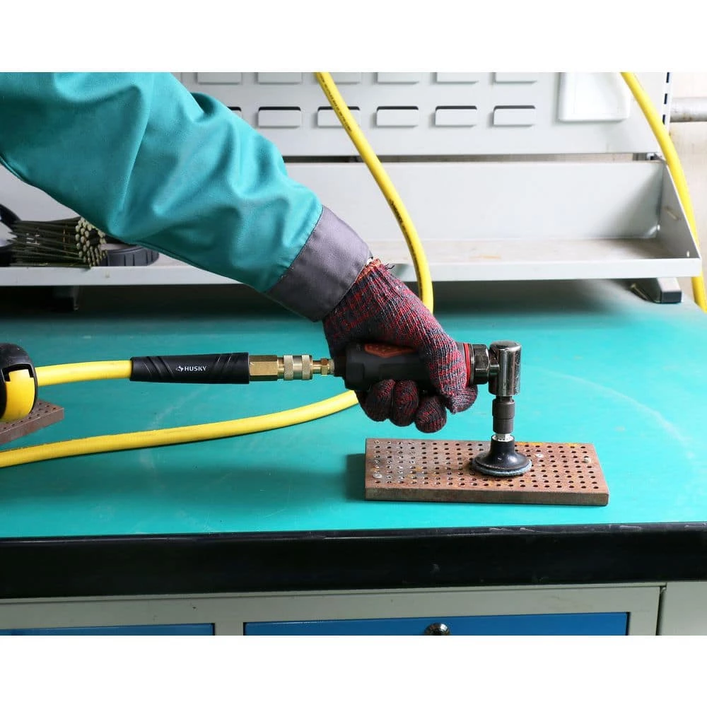 Husky Retractable Hybrid Air Hose is enclosed in a durable, crack-resistant case, making it great for anyone using pneumatic tools. It has a maximum 300 psi and includes a wall-mountable bracket and retracts automatically. Includes 3/8 in. x 50 ft. hybrid air hose.