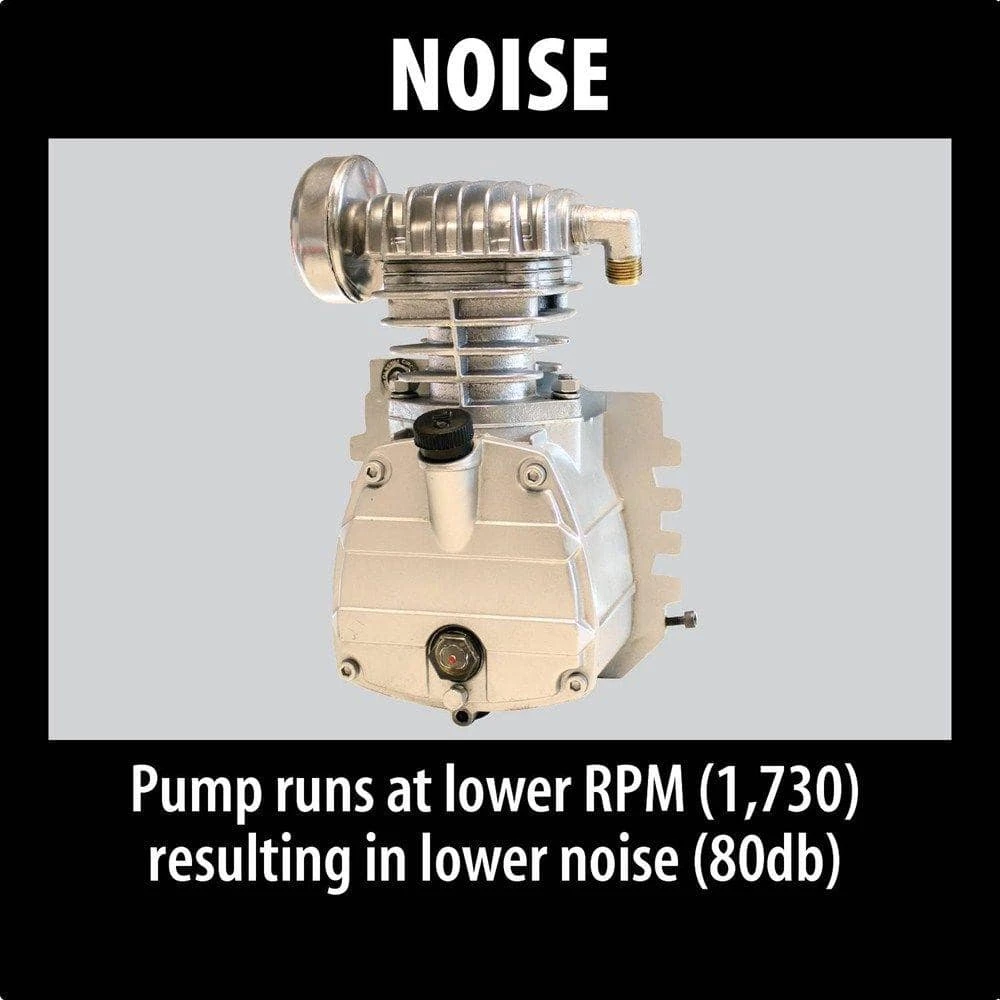 - Powerful 2 HP 4-pole motor produces 3.3 CFM at 90 psi for increased productivity