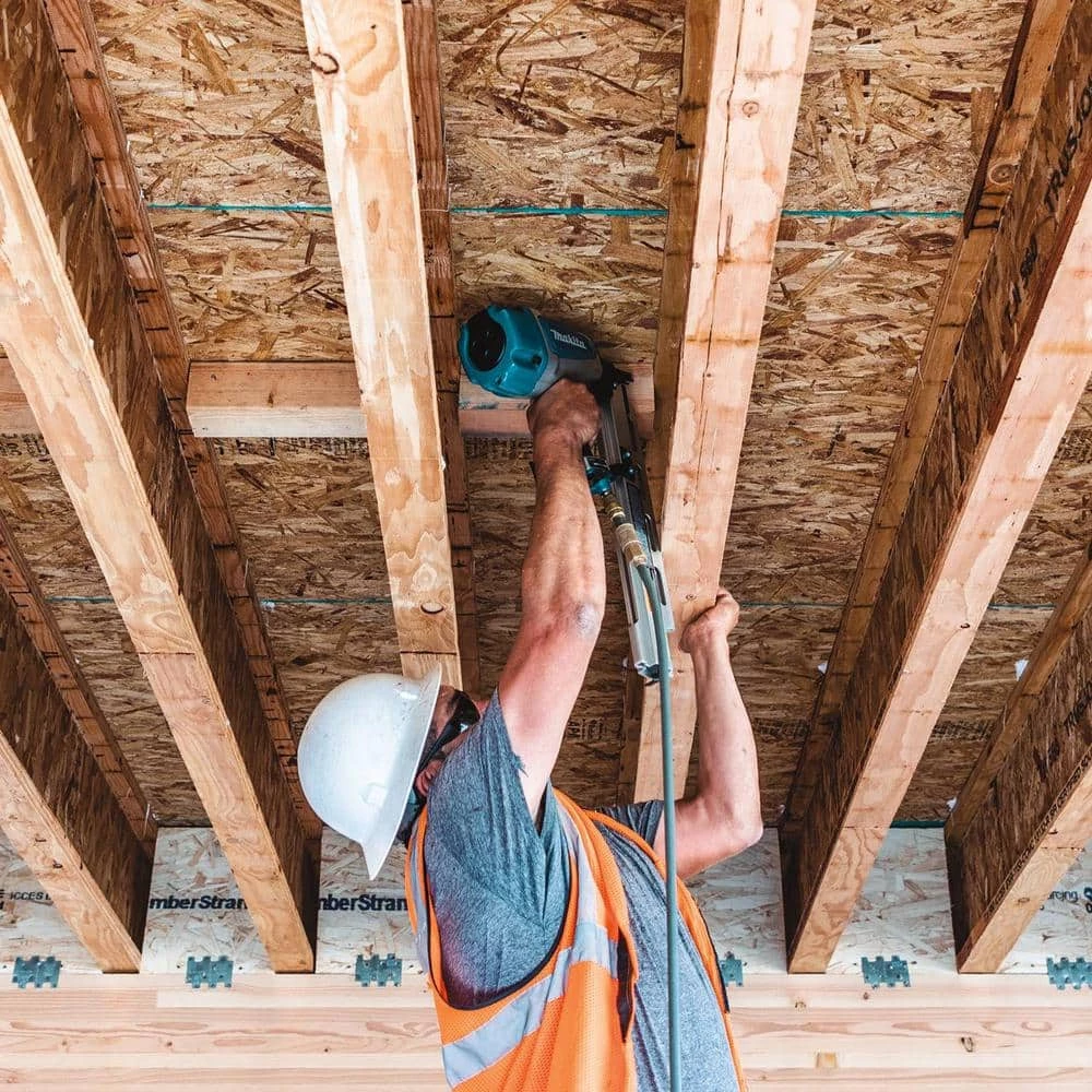 - Large capacity air chamber for increased power to drive nails up to 3-1/2″ x .148 in diameter