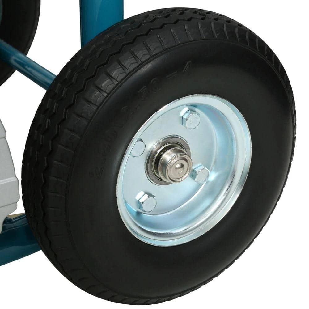- Air hose wrap stores 50 ft. of 3/8 in. air hose with handle folded or upright