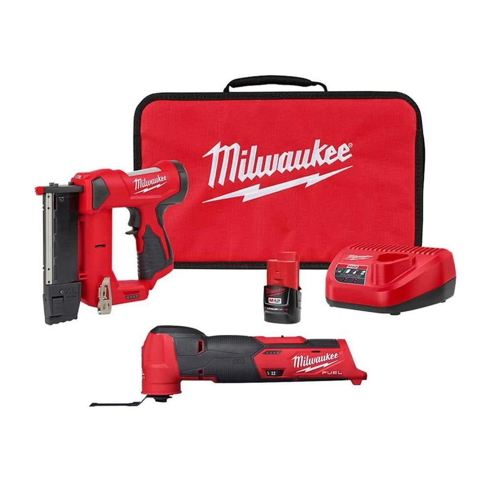 The Milwaukee M12 23-Gauge Pin Nailer Kit features the most compact cordless pin nailer, combining precision and power to deliver the performance that professional carpenters and remodelers demand, without the hassle of a compressor hose or gas cartridge. The 23-Gauge pin nailer provides users with unmatched productivity and accessibility in tight spaces and confined corners with a lightweight, ergonomic design. The nitrogen air spring mechanism allows the nailer to consistently sink pin nails at proper depth into hard or softwoods while leaving small, clean nail holes. The double-action trigger and non-marring precision point tip allow users to perform sequential driving and accurate pin placement into delicate trim pieces. The dry-fire lockout feature prevents misfires and workpiece damage. The M12 Pin Nailer drives 23-Gauge headless pin nails ranging in length from 1/2 in. to 1-3/8 in. and features all-day run time with up to 750 pin nails per charge when paired with an M12 REDLITHIUM CP1.5 battery pack. This battery-powered pin nailer also features a magazine reload indicator, tool-free drive depth adjustment, reversible belt clip, LED light, battery fuel gauge, secondary work contact tip, and carries an industry-leading 5-year limited power tool warranty. The Milwaukee M12 FUEL Oscillating Multi-Tool generates the fastest 12-Volt cut speed, lowest full-tool vibration, and delivers tool-free blade change for faster accessory changes and no misplaced tools.