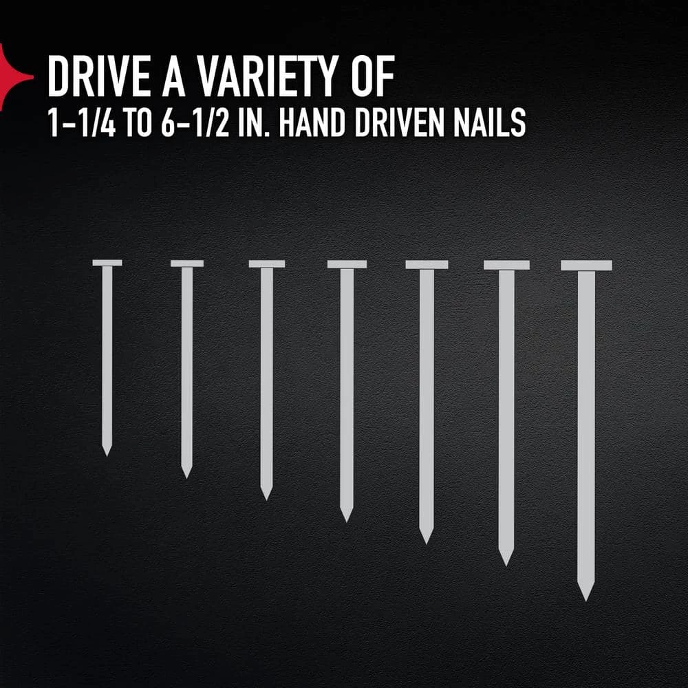 - Great for nailing in tight places where you can’t swing a hammer