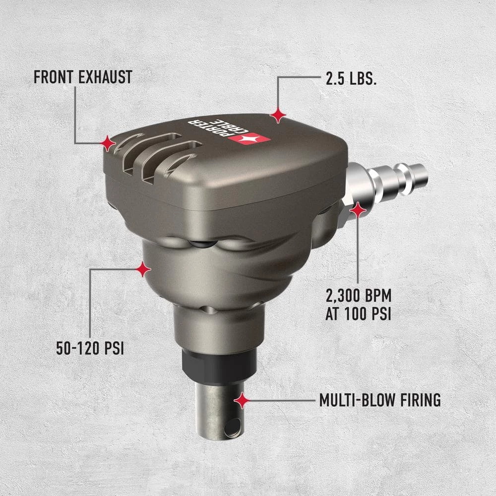 This Mini Impact Palm Nailer from Porter-Cable features a compact, lightweight design for impressive control and balance. Weighing in at only 1 lb., it’s just half the size and weight of competitive models, allowing it to fit easily in your tool belt. The front exhaust redirects cold air away from your hands for added comfort, and its compact design makes it perfect for jobs in tight spaces when there isn’t enough room to swing a hammer.