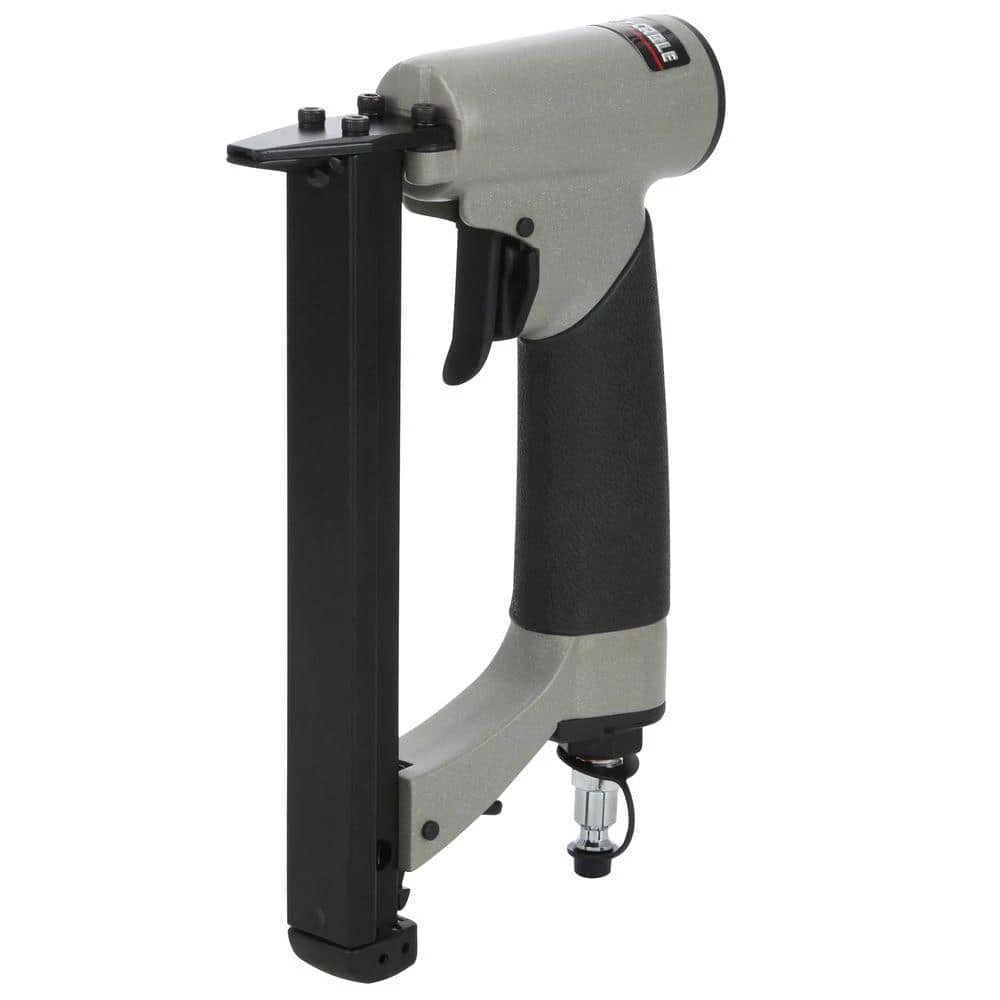 For custom upholstery projects, use this Porter-Cable Pneumatic 3/8 in. 22-Gauge Strip Upholstery Stapler. It is designed for convenience with a bottom-load magazine and lightweight body which allows for easy operation. The stapler works for limited clearance applications thanks to a 1 in. nose extension.