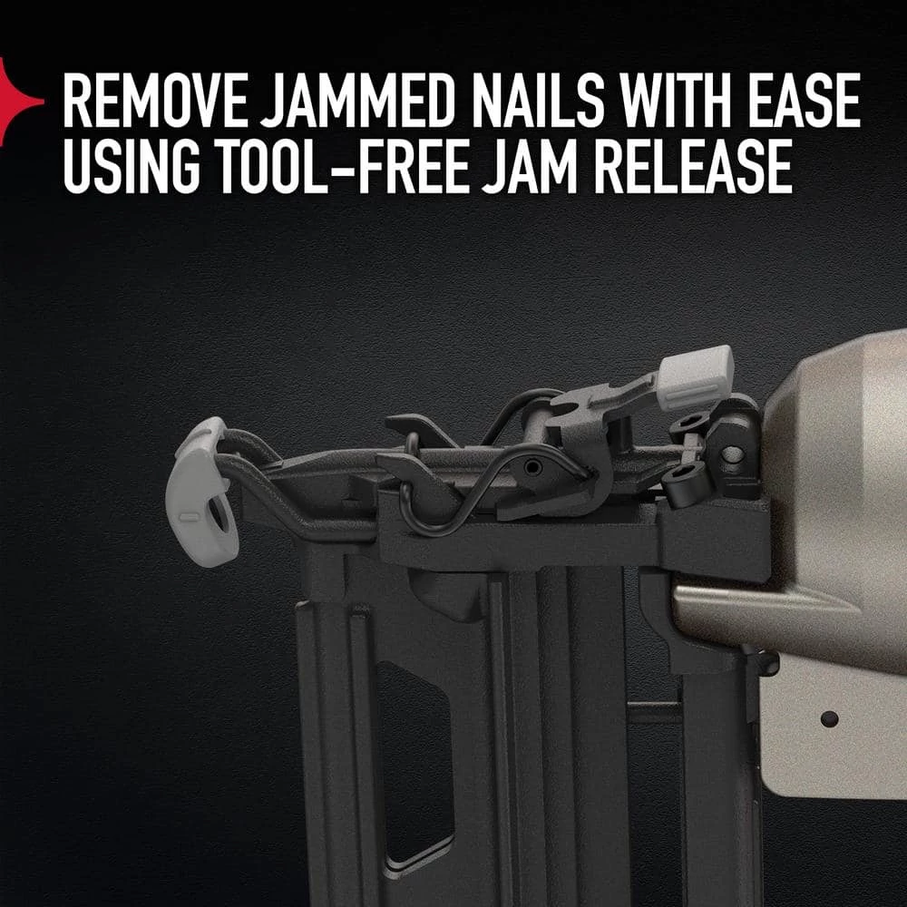 - Tool-free depth-of-drive adjustment with detents for proper setting of nail heads