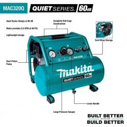 Makita 2.6 Gal. 2 HP Portable Electrical Hot Dog Air Compressor