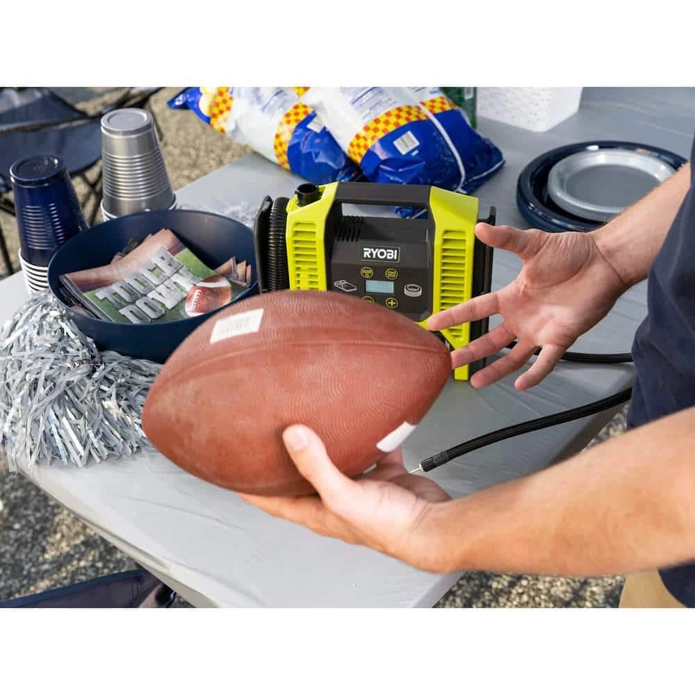 RYOBI introduces the 18V ONE+ Cordless Dual Function Inflator/Deflator with 2.0 Ah Battery. This inflator is capable of completing both high pressure and high volume applications. Powered by RYOBI 18V batteries, this unit has maximum portability for any location. Best of all, it is part of the RYOBI ONE+ System of over 260 cordless tools that all work on the same battery platform. The included battery is compatible with all RYOBI 18V Tools. Backed by the RYOBI 3-Year Manufacturer’s Warranty, the Dual Function Inflator/Deflator includes a high pressure hose, high pressure nozzle, Presta valve adaptor, sports ball needle, high volume hose, pinch valve nozzle, an 18V ONE+ 2.0 Ah Battery, and an operator’s manual.