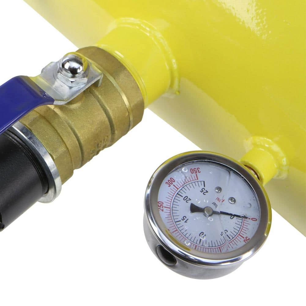 The Stark 5 Gal. Air Tire Bead Seater can quickly prep automotive, ATV and truck tires for inflating rigid tubing construction. It features a customized nozzle with shut-off valve that allows for smoother air release and better protection for tire rims and components. The easy-to-read gauge lets you accurately fill the air tank from standard shop compressors at the recommended operating pressure of 85 psi to 116 psi. The air bead seater provides a simple, fast and safe method to seat even the most difficult beads on all tires, from small 4 in. tires to large 24-1/2 in. truck tires with this all-in-1 compact air tank unit. Quickly seats the tire by supplying a high volume of air into the tire, expanding the tire sidewalls to seat the bead onto the wheel rim, using the valve stem to thoroughly supplement clean air for a complete tire inflation.